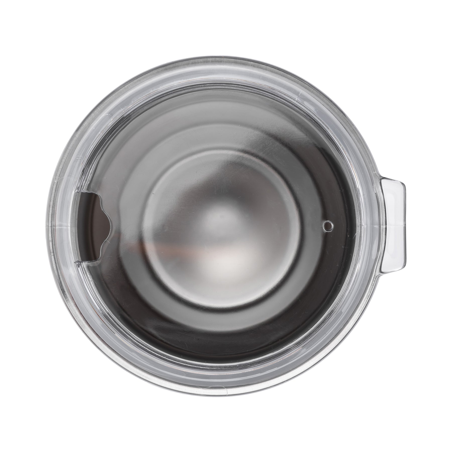 - Acrylic screw-on sip lid with straw opening and wide mouth for ice