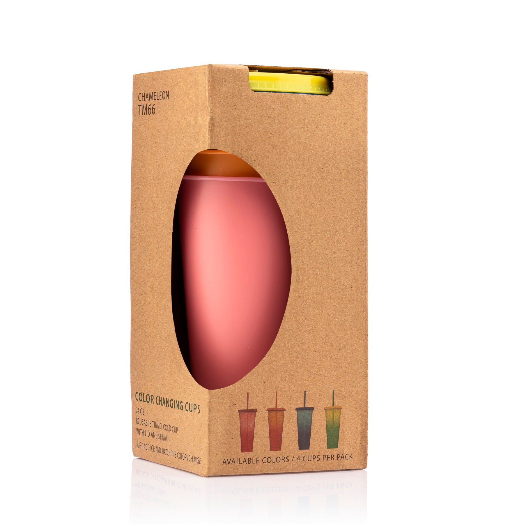• Set of four 24 oz color changing tumbler with reusable lid and straw